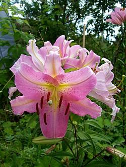 Восточные гибриды. Лилии поразительной красоты, их называют аристократами в мире лилий за экзотическую красоту необычайно привлекательных ароматных цветков. Цветки очень крупные, просто огромные, экзотических окрасок: бело-розовые, белые, малиновые, розовые с крапинками и полосками по центру волнистых лепестков или без них. Цветут в июле-сентябре. Необходимо солнечное место, хорошо защищенное от ветра, поскольку растения высокорослые с очень крупными цветками. Могут также расти в лёгкой тени деревьев. Главное правило — глубокая посадка, не менее 15 см, для защиты луковиц зимой.