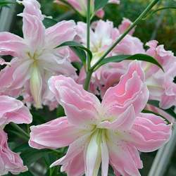 Восточные гибриды. Лилии поразительной красоты, их называют аристократами в мире лилий за экзотическую красоту необычайно привлекательных ароматных цветков. Цветки очень крупные, просто огромные, экзотических окрасок: бело-розовые, белые, малиновые, розовые с крапинками и полосками по центру волнистых лепестков или без них. Цветут в июле-сентябре. Необходимо солнечное место, хорошо защищенное от ветра, поскольку растения высокорослые с очень крупными цветками. Могут также расти в лёгкой тени деревьев. Главное правило — глубокая посадка, не менее 15 см, для защиты луковиц зимой.