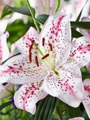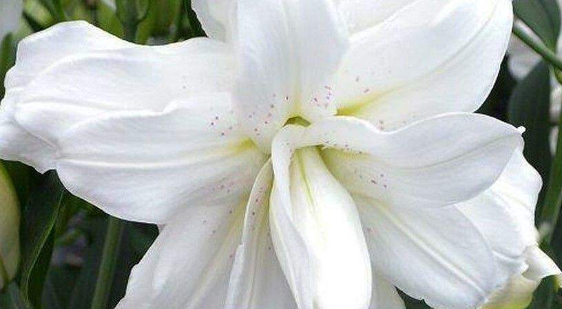 Лилия Lotus Pure (Лотус Пьюр). Имеет крупные пышные цветки до 20 см в диаметре, состоящие из нескольких слоев тонких нежных белоснежных лепестков. Аромат сладкий, стойкий, усиливающийся к вечеру.