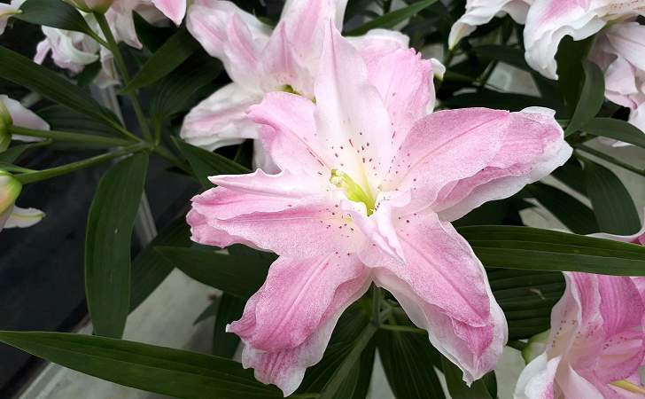 Восточные гибриды — их называют аристократами в мире лилий за экзотическую красоту необычайно привлекательных ароматных цветков. Цветки очень крупные, просто огромные, экзотических окрасок: бело-розовые, белые, малиновые, розовые с крапинками и полосками по центру волнистых лепестков или без них. На зиму требуют укрытия. Цветут в июле-сентябре.