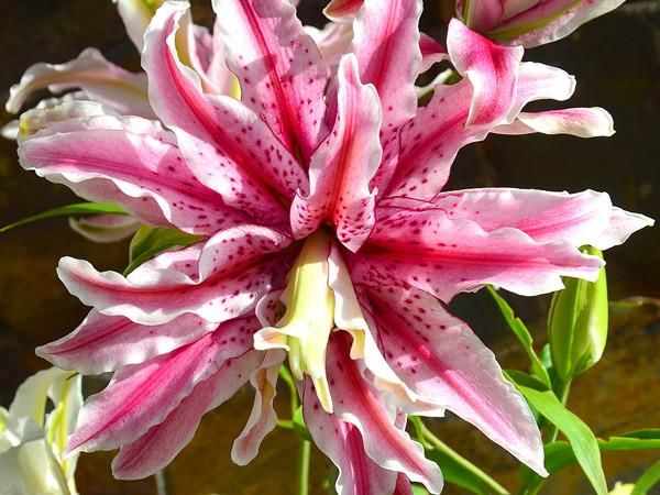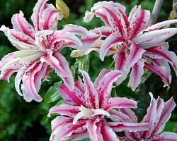 Восточные гибриды. Лилии поразительной красоты, их называют аристократами в мире лилий за экзотическую красоту необычайно привлекательных ароматных цветков. Цветки очень крупные, просто огромные, экзотических окрасок: бело-розовые, белые, малиновые, розовые с крапинками и полосками по центру волнистых лепестков или без них. Цветут в июле-сентябре. Необходимо солнечное место, хорошо защищенное от ветра, поскольку растения высокорослые с очень крупными цветками. Могут также расти в лёгкой тени деревьев. Главное правило — глубокая посадка, не менее 15 см, для защиты луковиц зимой.