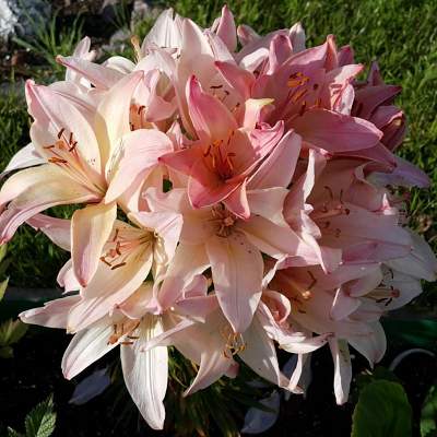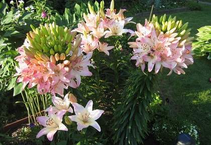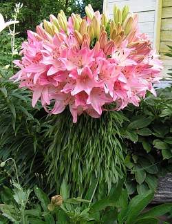 Лилия Марлен (Marlene). Соединила в себе качества представителей азиатской группы и лилий лонгифлорум. Высота стеблей 90-100 см, листья узкие, заостренные, длиной в 13 см, на стебле расположены поочередно. Цветки у лилии Марлен нежно-розовые, достаточно крупные — диаметром около 15 см.