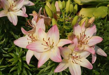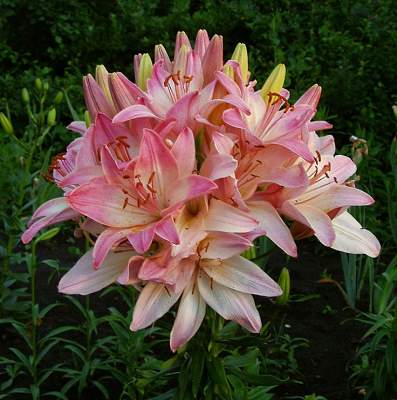 Азиатские гибриды. Наиболее приспособленный к условиям Средней полосы России раздел лилий. Сорта этой группы имеют наибольшее разнообразие по окраске, строению цветков, по высоте и срокам цветения. У них, за исключением единичных сортов, отсутствует аромат. Ассортимент этой группы очень обширен.