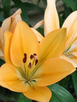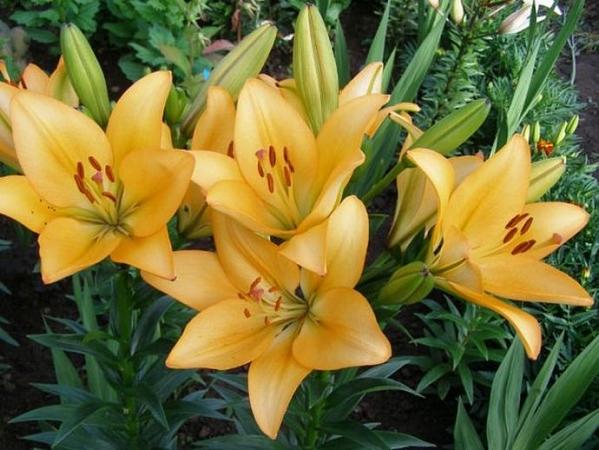 Лилии. Подходят для любого цветочного оформления участков. Низкорослые сорта и виды используют для посадок на бордюрах, высокие лилии используют для оформления дальнего плана и в солитерных посадках. Хороши они в группах, посаженные куртинами на газоне. Красиво смотрятся на фоне деревьев и кустарников и в сочетании со многими однолетниками и многолетниками. Некоторые низкорослые лилии можно применять для оформления каменистых участков.Используя при оформлении цветников лилии разного срока цветения, можно ими любоваться с июня до середины сентября.
