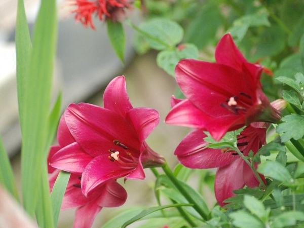 Лилии. Подходят для любого цветочного оформления участков. Низкорослые сорта и виды используют для посадок на бордюрах, высокие лилии используют для оформления дальнего плана и в солитерных посадках. Хороши они в группах, посаженные куртинами на газоне. Красиво смотрятся на фоне деревьев и кустарников и в сочетании со многими однолетниками и многолетниками. Некоторые низкорослые лилии можно применять для оформления каменистых участков.Используя при оформлении цветников лилии разного срока цветения, можно ими любоваться с июня до середины сентября.
