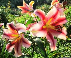 Лилии. Подходят для любого цветочного оформления участков. Низкорослые сорта и виды используют для посадок на бордюрах, высокие лилии используют для оформления дальнего плана и в солитерных посадках. Хороши они в группах, посаженные куртинами на газоне. Красиво смотрятся на фоне деревьев и кустарников и в сочетании со многими однолетниками и многолетниками. Некоторые низкорослые лилии можно применять для оформления каменистых участков.Используя при оформлении цветников лилии разного срока цветения, можно ими любоваться с июня до середины сентября.
