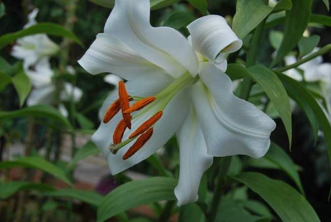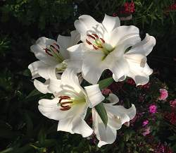 Лилии. Подходят для любого цветочного оформления участков. Низкорослые сорта и виды используют для посадок на бордюрах, высокие лилии используют для оформления дальнего плана и в солитерных посадках. Хороши они в группах, посаженные куртинами на газоне. Красиво смотрятся на фоне деревьев и кустарников и в сочетании со многими однолетниками и многолетниками. Некоторые низкорослые лилии можно применять для оформления каменистых участков.Используя при оформлении цветников лилии разного срока цветения, можно ими любоваться с июня до середины сентября.