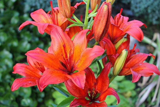 Лилия Orange Summer (Оранж Саммер). Очень яркая, с крупным (15 см) цветком. Цветет обильно. Высота до 100 см.