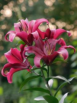 Лилии. Подходят для любого цветочного оформления участков. Низкорослые сорта и виды используют для посадок на бордюрах, высокие лилии используют для оформления дальнего плана и в солитерных посадках. Хороши они в группах, посаженные куртинами на газоне. Красиво смотрятся на фоне деревьев и кустарников и в сочетании со многими однолетниками и многолетниками. Некоторые низкорослые лилии можно применять для оформления каменистых участков.Используя при оформлении цветников лилии разного срока цветения, можно ими любоваться с июня до середины сентября.