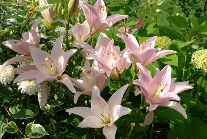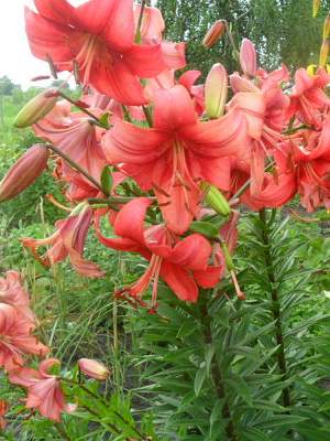 Лилии. Подходят для любого цветочного оформления участков. Низкорослые сорта и виды используют для посадок на бордюрах, высокие лилии используют для оформления дальнего плана и в солитерных посадках. Хороши они в группах, посаженные куртинами на газоне. Красиво смотрятся на фоне деревьев и кустарников и в сочетании со многими однолетниками и многолетниками. Некоторые низкорослые лилии можно применять для оформления каменистых участков.Используя при оформлении цветников лилии разного срока цветения, можно ими любоваться с июня до середины сентября.