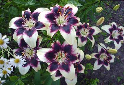 Лилии. Подходят для любого цветочного оформления участков. Низкорослые сорта и виды используют для посадок на бордюрах, высокие лилии используют для оформления дальнего плана и в солитерных посадках. Хороши они в группах, посаженные куртинами на газоне. Красиво смотрятся на фоне деревьев и кустарников и в сочетании со многими однолетниками и многолетниками. Некоторые низкорослые лилии можно применять для оформления каменистых участков.Используя при оформлении цветников лилии разного срока цветения, можно ими любоваться с июня до середины сентября.