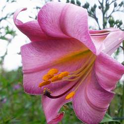 Лилия Pink Perfection (Пинк Перфекшен). Цветок фуксиново-розовый, края насыщенно-розовые, длина цветка 13 см, диаметр 11 см.
