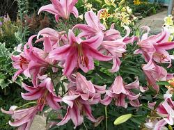 Лилия ОТ-гибрид Пёпл Кинг (Purple King). Сиренево-розовая с насыщенно-розовым центром и исходящими из сердцевины до середины лепестка лучами. Высота 115 см.