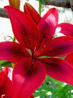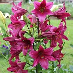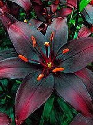 Лилия Purple Prince (Пёпл Принц). Высота растения 120 см. Цветки крупные, насыщенно-пурпурные, направлены вверх и в стороны.
