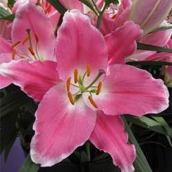 Восточные гибриды. Лилии поразительной красоты, их называют аристократами в мире лилий за экзотическую красоту необычайно привлекательных ароматных цветков. Цветки очень крупные, просто огромные, экзотических окрасок: бело-розовые, белые, малиновые, розовые с крапинками и полосками по центру волнистых лепестков или без них. Цветут в июле-сентябре. Необходимо солнечное место, хорошо защищенное от ветра, поскольку растения высокорослые с очень крупными цветками. Могут также расти в лёгкой тени деревьев. Главное правило — глубокая посадка, не менее 15 см, для защиты луковиц зимой.