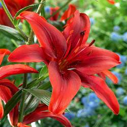 Лилия Red Highland (Ред Хайлэнд). Яркая окраска и неприхотливость, несомненно, сделают этот сорт садовым фаворитом. Цветки красные, диаметром около 15 см. Легко разрастается, требует минимального ухода. Высота около 80 см.