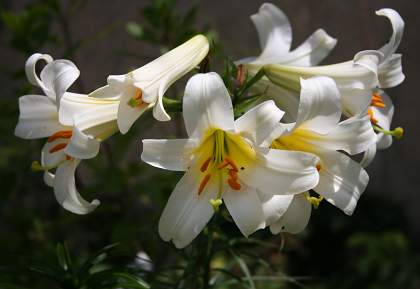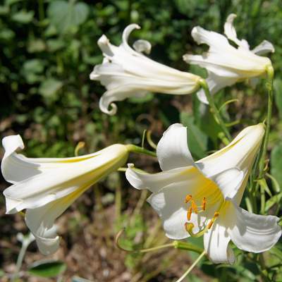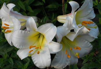 Лилии. Подходят для любого цветочного оформления участков. Низкорослые сорта и виды используют для посадок на бордюрах, высокие лилии используют для оформления дальнего плана и в солитерных посадках. Хороши они в группах, посаженные куртинами на газоне. Красиво смотрятся на фоне деревьев и кустарников и в сочетании со многими однолетниками и многолетниками. Некоторые низкорослые лилии можно применять для оформления каменистых участков.Используя при оформлении цветников лилии разного срока цветения, можно ими любоваться с июня до середины сентября.