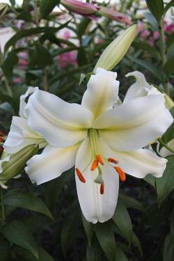Лилии. Подходят для любого цветочного оформления участков. Низкорослые сорта и виды используют для посадок на бордюрах, высокие лилии используют для оформления дальнего плана и в солитерных посадках. Хороши они в группах, посаженные куртинами на газоне. Красиво смотрятся на фоне деревьев и кустарников и в сочетании со многими однолетниками и многолетниками. Некоторые низкорослые лилии можно применять для оформления каменистых участков.Используя при оформлении цветников лилии разного срока цветения, можно ими любоваться с июня до середины сентября.