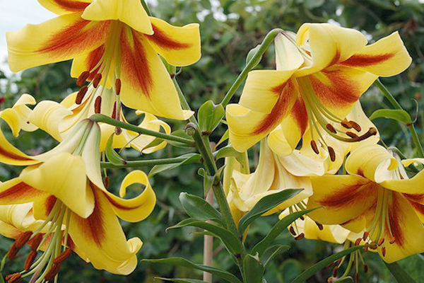 Лилия Robert Swanson (Роберт Свенсон). Лилия из тех, которые называют "лилейным деревом". Высота более 150 см. Цветки огромные (25 см), золотисто-желтые с шоколадно-коричневой звездой. Аромат сладкий. Цветение никого не оставляет равнодушным.