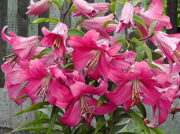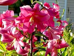 Лилии. Подходят для любого цветочного оформления участков. Низкорослые сорта и виды используют для посадок на бордюрах, высокие лилии используют для оформления дальнего плана и в солитерных посадках. Хороши они в группах, посаженные куртинами на газоне. Красиво смотрятся на фоне деревьев и кустарников и в сочетании со многими однолетниками и многолетниками. Некоторые низкорослые лилии можно применять для оформления каменистых участков.Используя при оформлении цветников лилии разного срока цветения, можно ими любоваться с июня до середины сентября.