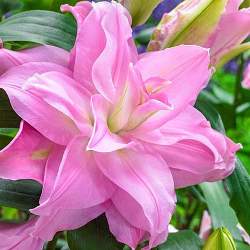 Лилия Roselily Editha (Роузлили Эдита). Густомахровая восточная лилия. Цветок очень крупный (21 см), розовый, очень приятного тона, ароматный. Высота от 90 до 120 см. Одна из самых красивых махровых лилий.