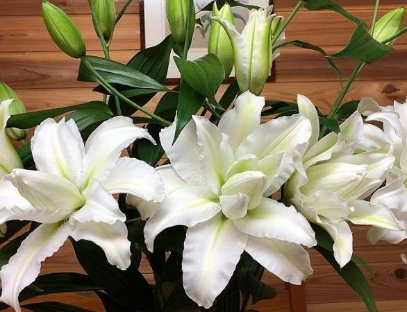 Восточные гибриды. Лилии поразительной красоты, их называют аристократами в мире лилий за экзотическую красоту необычайно привлекательных ароматных цветков. Цветки очень крупные, просто огромные, экзотических окрасок: бело-розовые, белые, малиновые, розовые с крапинками и полосками по центру волнистых лепестков или без них. Цветут в июле-сентябре. Необходимо солнечное место, хорошо защищенное от ветра, поскольку растения высокорослые с очень крупными цветками. Могут также расти в лёгкой тени деревьев. Главное правило — глубокая посадка, не менее 15 см, для защиты луковиц зимой.