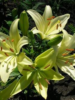 Лилии. Подходят для любого цветочного оформления участков. Низкорослые сорта и виды используют для посадок на бордюрах, высокие лилии используют для оформления дальнего плана и в солитерных посадках. Хороши они в группах, посаженные куртинами на газоне. Красиво смотрятся на фоне деревьев и кустарников и в сочетании со многими однолетниками и многолетниками. Некоторые низкорослые лилии можно применять для оформления каменистых участков.Используя при оформлении цветников лилии разного срока цветения, можно ими любоваться с июня до середины сентября.