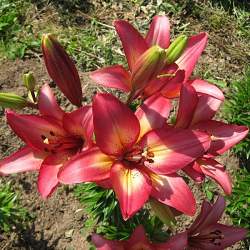 ЛА-гибриды. Новая группа гибридных лилий, полученная в 1990-х годах в США и Голландии. Цветут обильно и продолжительно почти в одно время с Азиатскими гибридами, но цветки более крупные и менее ломкие. Обычно без запаха. Стебли прочные, крепкие. Практически ничем не болеют, обладают хорошей зимостойкостью. Требуются открытые или слегка затененные дренированные участки с нейтральной или слабокислой реакцией почвы. Предпочтительна весенняя посадка. Необходимо высаживать в защищенное от ветра место. С наступлением первых заморозков, не дожидаясь промерзания почвы, желательно замульчировать посадки листьями или торфом, смешанным с листовым перегноем.