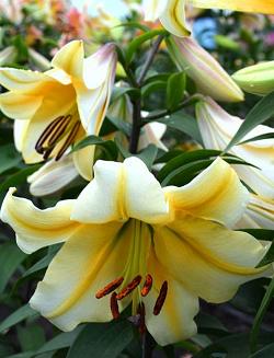 Лилии. Подходят для любого цветочного оформления участков. Низкорослые сорта и виды используют для посадок на бордюрах, высокие лилии используют для оформления дальнего плана и в солитерных посадках. Хороши они в группах, посаженные куртинами на газоне. Красиво смотрятся на фоне деревьев и кустарников и в сочетании со многими однолетниками и многолетниками. Некоторые низкорослые лилии можно применять для оформления каменистых участков.Используя при оформлении цветников лилии разного срока цветения, можно ими любоваться с июня до середины сентября.