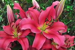 Лилии. Подходят для любого цветочного оформления участков. Низкорослые сорта и виды используют для посадок на бордюрах, высокие лилии используют для оформления дальнего плана и в солитерных посадках. Хороши они в группах, посаженные куртинами на газоне. Красиво смотрятся на фоне деревьев и кустарников и в сочетании со многими однолетниками и многолетниками. Некоторые низкорослые лилии можно применять для оформления каменистых участков.Используя при оформлении цветников лилии разного срока цветения, можно ими любоваться с июня до середины сентября.