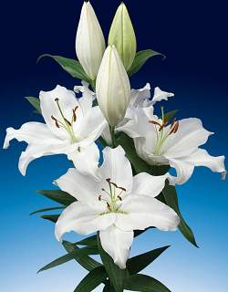 Восточные гибриды. Лилии поразительной красоты, их называют аристократами в мире лилий за экзотическую красоту необычайно привлекательных ароматных цветков. Цветки очень крупные, просто огромные, экзотических окрасок: бело-розовые, белые, малиновые, розовые с крапинками и полосками по центру волнистых лепестков или без них. Цветут в июле-сентябре. Необходимо солнечное место, хорошо защищенное от ветра, поскольку растения высокорослые с очень крупными цветками. Могут также расти в лёгкой тени деревьев. Главное правило — глубокая посадка, не менее 15 см, для защиты луковиц зимой.