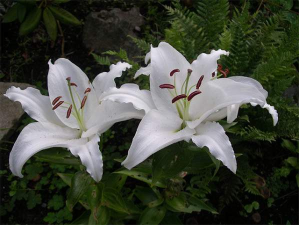 Лилии. Подходят для любого цветочного оформления участков. Низкорослые сорта и виды используют для посадок на бордюрах, высокие лилии используют для оформления дальнего плана и в солитерных посадках. Хороши они в группах, посаженные куртинами на газоне. Красиво смотрятся на фоне деревьев и кустарников и в сочетании со многими однолетниками и многолетниками. Некоторые низкорослые лилии можно применять для оформления каменистых участков. Используя при оформлении цветников лилии разного срока цветения, можно ими любоваться с июня до середины сентября.