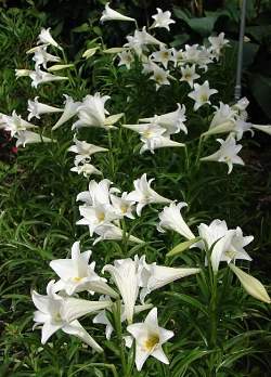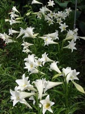 Лонгифлорум. Cамые величественные из всех гибридов, с приятным ароматом. Их цветки с загнутыми кончиками лепестков достигают 20 см в длину. Такие лилии можно выращивать как в закрытом грунте для выгонки, так и в саду. Эти грациозные цветы достигают высоты 0,8-1,0 м. Цветение происходит в июле-августе.