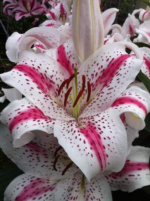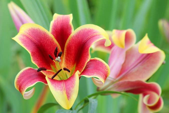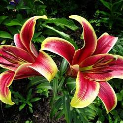 Лилии. Подходят для любого цветочного оформления участков. Низкорослые сорта и виды используют для посадок на бордюрах, высокие лилии используют для оформления дальнего плана и в солитерных посадках. Хороши они в группах, посаженные куртинами на газоне. Красиво смотрятся на фоне деревьев и кустарников и в сочетании со многими однолетниками и многолетниками. Некоторые низкорослые лилии можно применять для оформления каменистых участков.Используя при оформлении цветников лилии разного срока цветения, можно ими любоваться с июня до середины сентября.