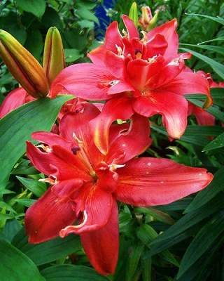 Азиатские гибриды. Наиболее приспособленный к условиям Средней полосы России раздел лилий. Сорта этой группы имеют наибольшее разнообразие по окраске, строению цветков, по высоте и срокам цветения. У них, за исключением единичных сортов, отсутствует аромат. Ассортимент этой группы очень обширен.