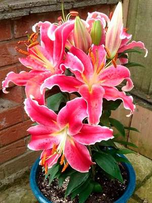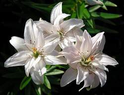 Лилии. Подходят для любого цветочного оформления участков. Низкорослые сорта и виды используют для посадок на бордюрах, высокие лилии используют для оформления дальнего плана и в солитерных посадках. Хороши они в группах, посаженные куртинами на газоне. Красиво смотрятся на фоне деревьев и кустарников и в сочетании со многими однолетниками и многолетниками. Некоторые низкорослые лилии можно применять для оформления каменистых участков.Используя при оформлении цветников лилии разного срока цветения, можно ими любоваться с июня до середины сентября.