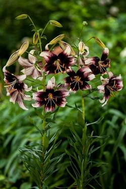 Лилии. Подходят для любого цветочного оформления участков. Низкорослые сорта и виды используют для посадок на бордюрах, высокие лилии используют для оформления дальнего плана и в солитерных посадках. Хороши они в группах, посаженные куртинами на газоне. Красиво смотрятся на фоне деревьев и кустарников и в сочетании со многими однолетниками и многолетниками. Некоторые низкорослые лилии можно применять для оформления каменистых участков.Используя при оформлении цветников лилии разного срока цветения, можно ими любоваться с июня до середины сентября.