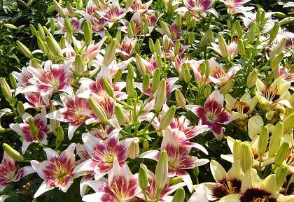 Азиатские гибриды. Наиболее приспособленный к условиям Средней полосы России раздел лилий. Сорта этой группы имеют наибольшее разнообразие по окраске, строению цветков, по высоте и срокам цветения. У них, за исключением единичных сортов, отсутствует аромат. Ассортимент этой группы очень обширен.