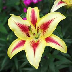 Лилии. Подходят для любого цветочного оформления участков. Низкорослые сорта и виды используют для посадок на бордюрах, высокие лилии используют для оформления дальнего плана и в солитерных посадках. Хороши они в группах, посаженные куртинами на газоне. Красиво смотрятся на фоне деревьев и кустарников и в сочетании со многими однолетниками и многолетниками. Некоторые низкорослые лилии можно применять для оформления каменистых участков.Используя при оформлении цветников лилии разного срока цветения, можно ими любоваться с июня до середины сентября.