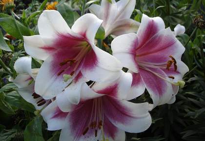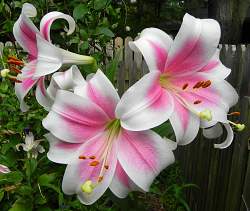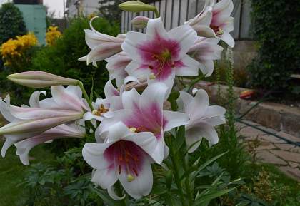 Лилии. Подходят для любого цветочного оформления участков. Низкорослые сорта и виды используют для посадок на бордюрах, высокие лилии используют для оформления дальнего плана и в солитерных посадках. Хороши они в группах, посаженные куртинами на газоне. Красиво смотрятся на фоне деревьев и кустарников и в сочетании со многими однолетниками и многолетниками. Некоторые низкорослые лилии можно применять для оформления каменистых участков.Используя при оформлении цветников лилии разного срока цветения, можно ими любоваться с июня до середины сентября.