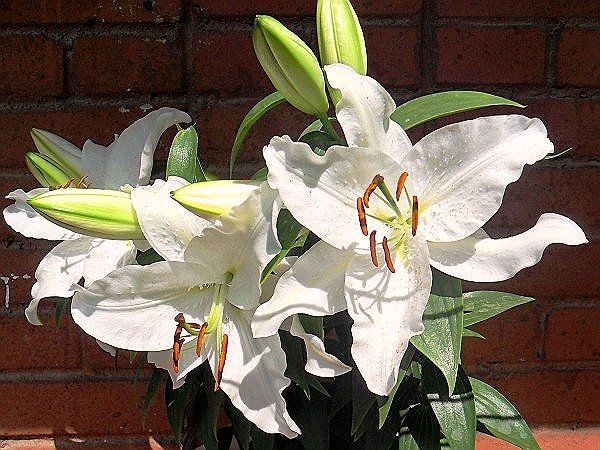 Восточные гибриды. Лилии поразительной красоты, их называют аристократами в мире лилий за экзотическую красоту необычайно привлекательных ароматных цветков. Цветки очень крупные, просто огромные, экзотических окрасок: бело-розовые, белые, малиновые, розовые с крапинками и полосками по центру волнистых лепестков или без них. Цветут в июле-сентябре. Необходимо солнечное место, хорошо защищенное от ветра, поскольку растения высокорослые с очень крупными цветками. Могут также расти в лёгкой тени деревьев. Главное правило — глубокая посадка, не менее 15 см, для защиты луковиц зимой.