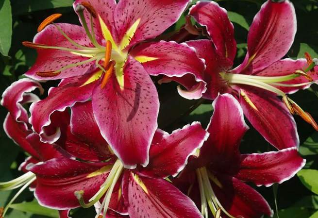 Восточные гибриды. Лилии поразительной красоты, их называют аристократами в мире лилий за экзотическую красоту необычайно привлекательных ароматных цветков. Цветки очень крупные, просто огромные, экзотических окрасок: бело-розовые, белые, малиновые, розовые с крапинками и полосками по центру волнистых лепестков или без них. Цветут в июле-сентябре. Необходимо солнечное место, хорошо защищенное от ветра, поскольку растения высокорослые с очень крупными цветками. Могут также расти в лёгкой тени деревьев. Главное правило — глубокая посадка, не менее 15 см, для защиты луковиц зимой.