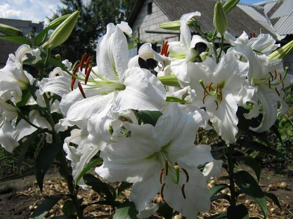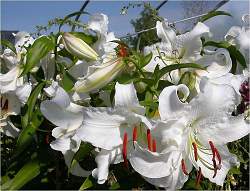 Лилии. Подходят для любого цветочного оформления участков. Низкорослые сорта и виды используют для посадок на бордюрах, высокие лилии используют для оформления дальнего плана и в солитерных посадках. Хороши они в группах, посаженные куртинами на газоне. Красиво смотрятся на фоне деревьев и кустарников и в сочетании со многими однолетниками и многолетниками. Некоторые низкорослые лилии можно применять для оформления каменистых участков.Используя при оформлении цветников лилии разного срока цветения, можно ими любоваться с июня до середины сентября.