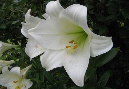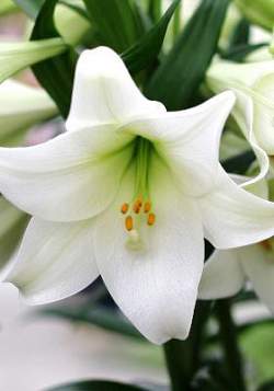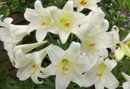 Лонгифлорум. Cамые величественные из всех гибридов, с приятным ароматом. Их цветки с загнутыми кончиками лепестков достигают 20 см в длину. Такие лилии можно выращивать как в закрытом грунте для выгонки, так и в саду. Эти грациозные цветы достигают высоты 0,8-1,0 м. Цветение происходит в июле-августе.