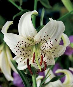 Лилия White Tiger (Вайт Тайгер). Одна из самых обаятельных и обильных чалмовидных лилий. Очень эффектна, быстро разрастается. Высота около 60 см. Превосходная лилия для подмосковных садов.