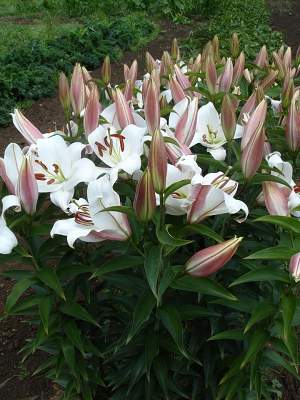 Лилии. Подходят для любого цветочного оформления участков. Низкорослые сорта и виды используют для посадок на бордюрах, высокие лилии используют для оформления дальнего плана и в солитерных посадках. Хороши они в группах, посаженные куртинами на газоне. Красиво смотрятся на фоне деревьев и кустарников и в сочетании со многими однолетниками и многолетниками. Некоторые низкорослые лилии можно применять для оформления каменистых участков.Используя при оформлении цветников лилии разного срока цветения, можно ими любоваться с июня до середины сентября.