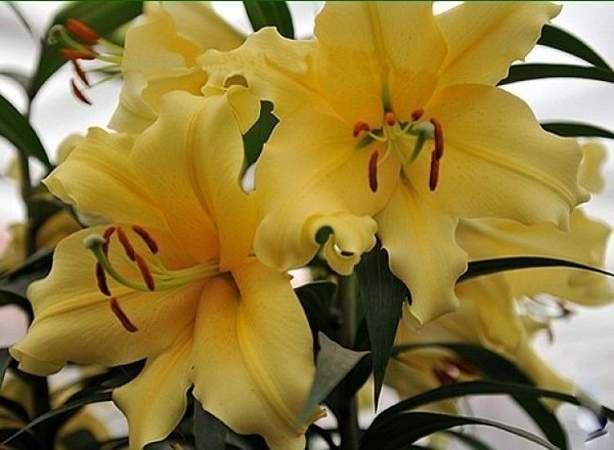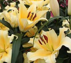 Лилии. Подходят для любого цветочного оформления участков. Низкорослые сорта и виды используют для посадок на бордюрах, высокие лилии используют для оформления дальнего плана и в солитерных посадках. Хороши они в группах, посаженные куртинами на газоне. Красиво смотрятся на фоне деревьев и кустарников и в сочетании со многими однолетниками и многолетниками. Некоторые низкорослые лилии можно применять для оформления каменистых участков.Используя при оформлении цветников лилии разного срока цветения, можно ими любоваться с июня до середины сентября.