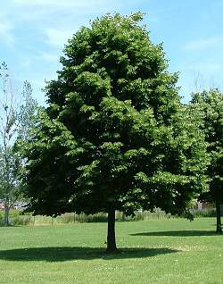 Дерево с компактной овальной кроной и стройным стволом цилиндрической формы. Верхние ветви кроны обычно направлены вверх, средние идут почти горизонтально, нижние, особенно у опушечных деревьев, свисают вниз. Листья до б см, сердцевидные, с оттянутой верхушкой, сверху темно-зеленые.