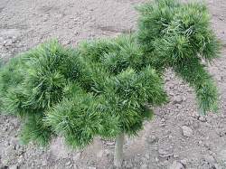 Боковые побеги отрастают от проводников и растут вертикально вверх, но медленно (4-5 см в год). Молодые побеги красно-бурые. Хвоя короткая, длиной до 2 см, изогнутая, зелёная с лёгким голубоватым оттенком, густо расположена на побегах. Шишек не образует. Место солнечное. Почва плодородная, умеренно влажная, дренированная.