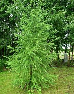 Дерево со стройным стволом и конической кроной. Сильнорослое, в возрасте 30 лет достигает 15 м в высоту. Хвоя нежная, ярко-зелёная, осенью — золотисто-жёлтая, на зиму опадает. Боковые побеги поникающие. Нуждается в плодородных и умеренно влажных почвах. Широко используется в озеленении городов и промышленных территорий. Хорошо переносит обрезку и формирование. Место посадки — солнце.